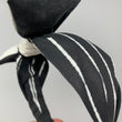 The band of this hairband is a black and white pinstriped fabric with a bone white fabric for the bow... In short, the perfect accessory for any Nightmare Before Christmas fans!