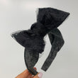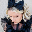 This Bow XL is our larger bow shape, and has a black sparkle base fabric, with layers of tulle fabric around the bow itself.